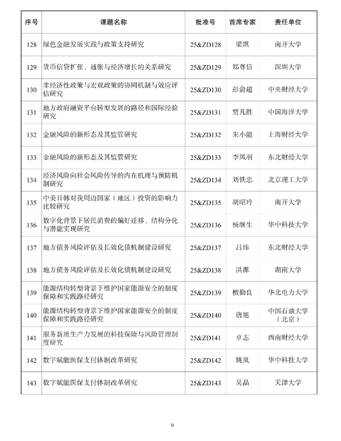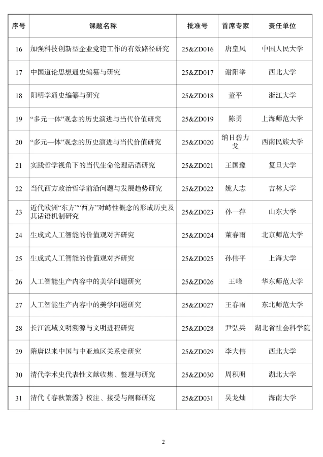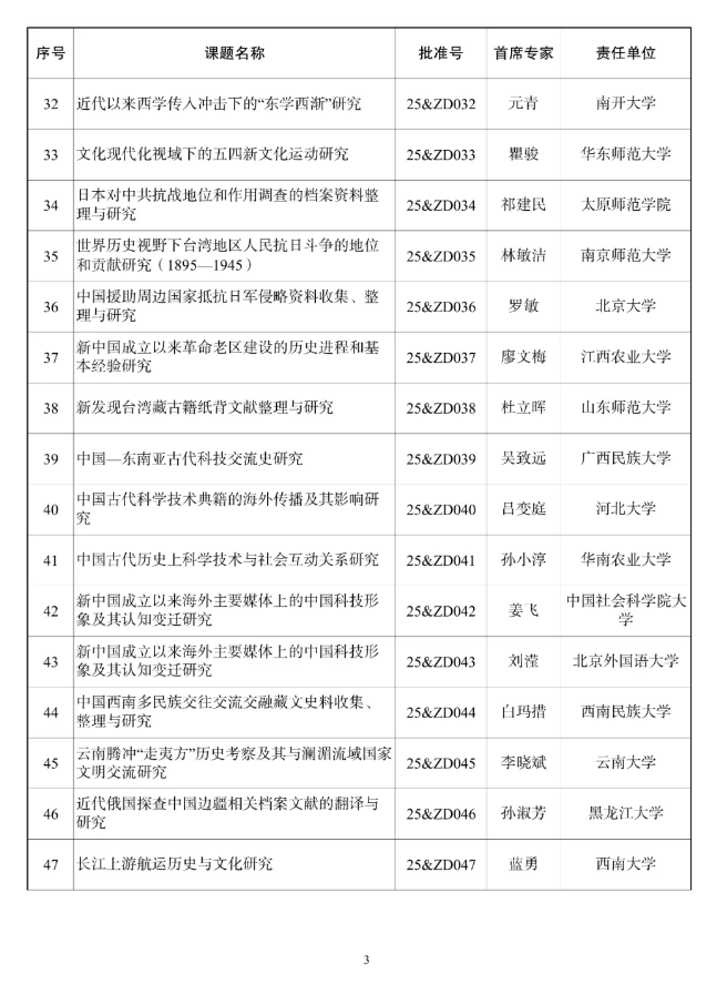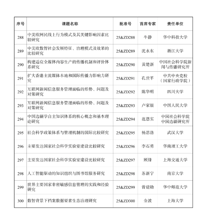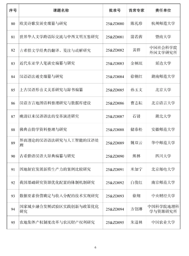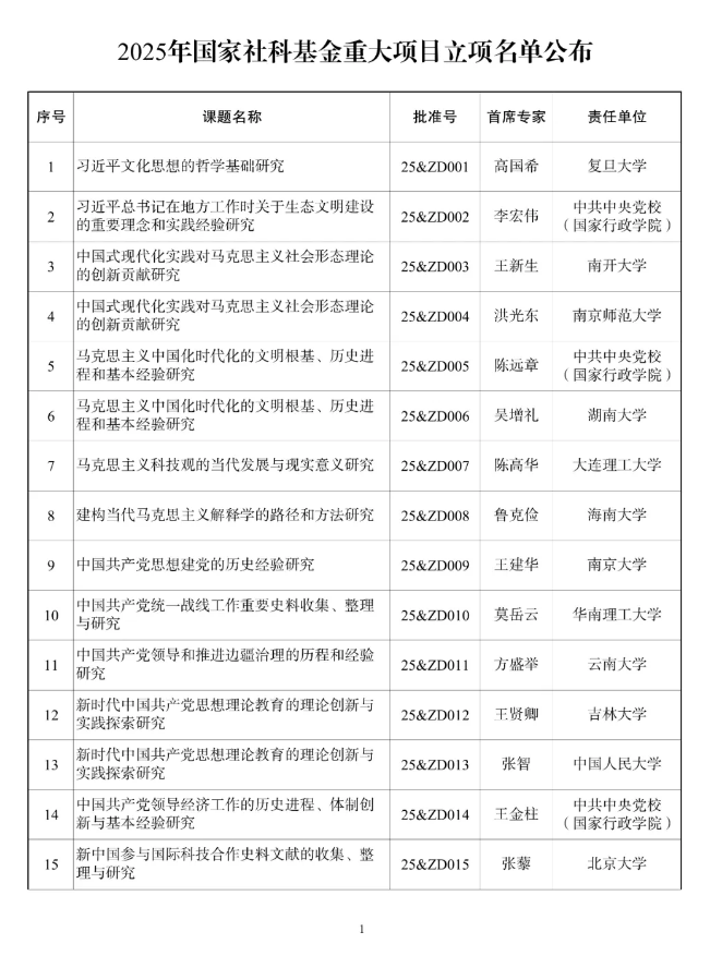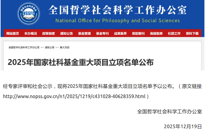 项目专栏:2025年国家社科基金重大项目立项名单公布