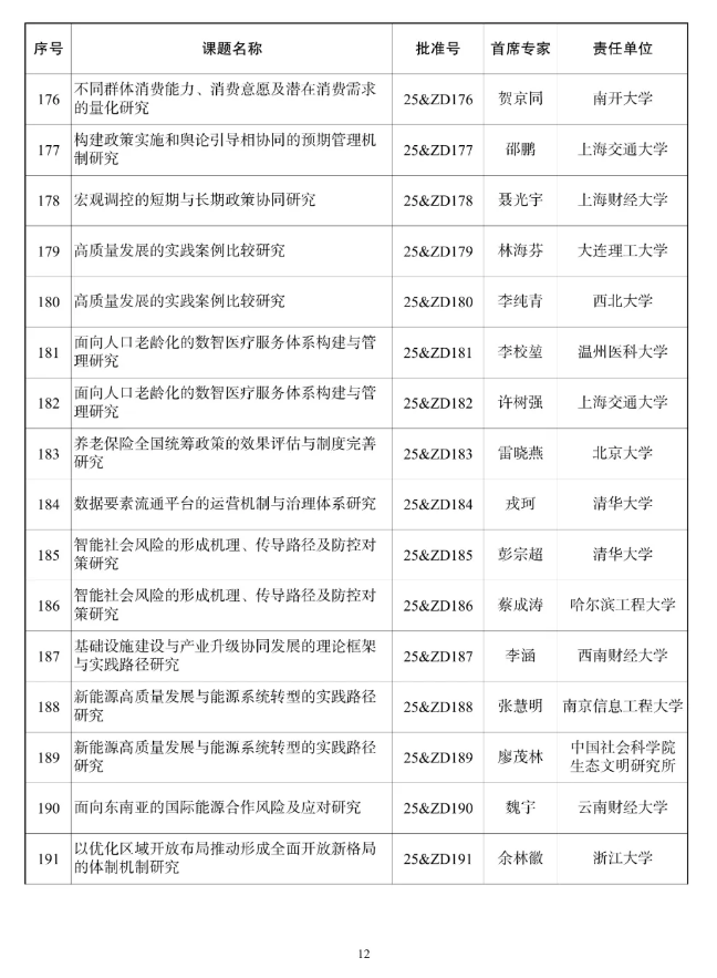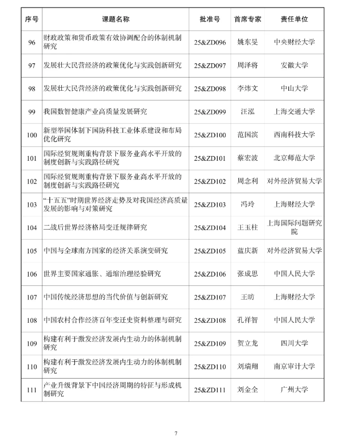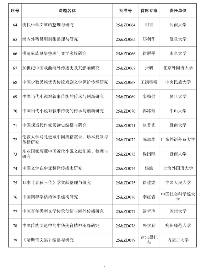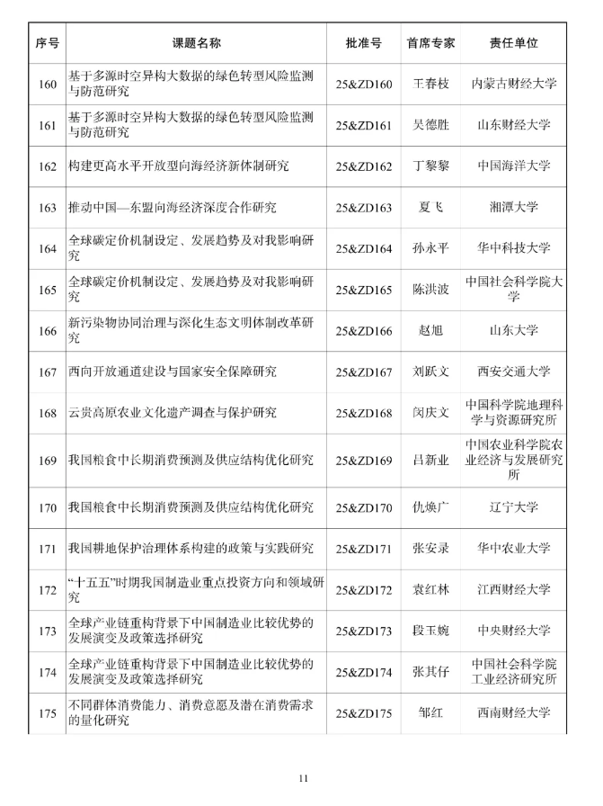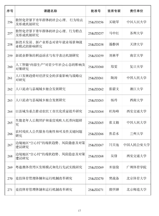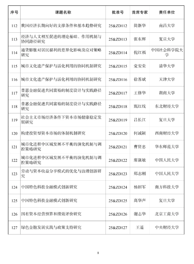 项目专栏:2025年国家社科基金重大项目立项名单公布